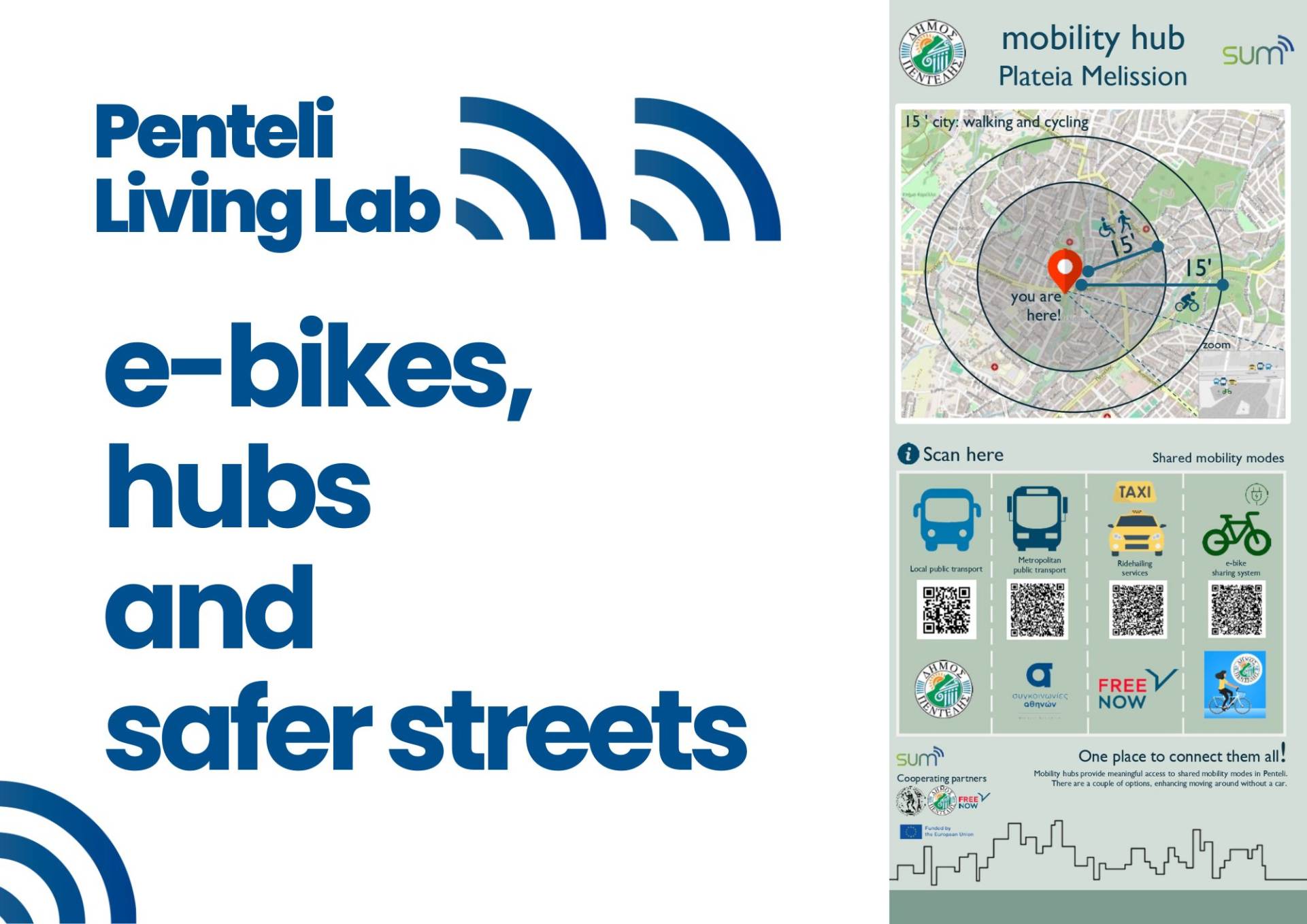 The Athens-Penteli Living Lab focuses on integrating New and Shared Mobility (NSM) with public transport, co-creating adaptive street spaces, and integrating NSM with public transport ticketing systems. Efforts include improving road safety, developing pedestrian and cycling networks, introducing charging points for electric vehicles and involving citizens in urban planning. With an emphasis on sustainability, the Lab’s challenges include improving pedestrian safety, reducing congestion, and increasing green spaces while minimising pollutants.